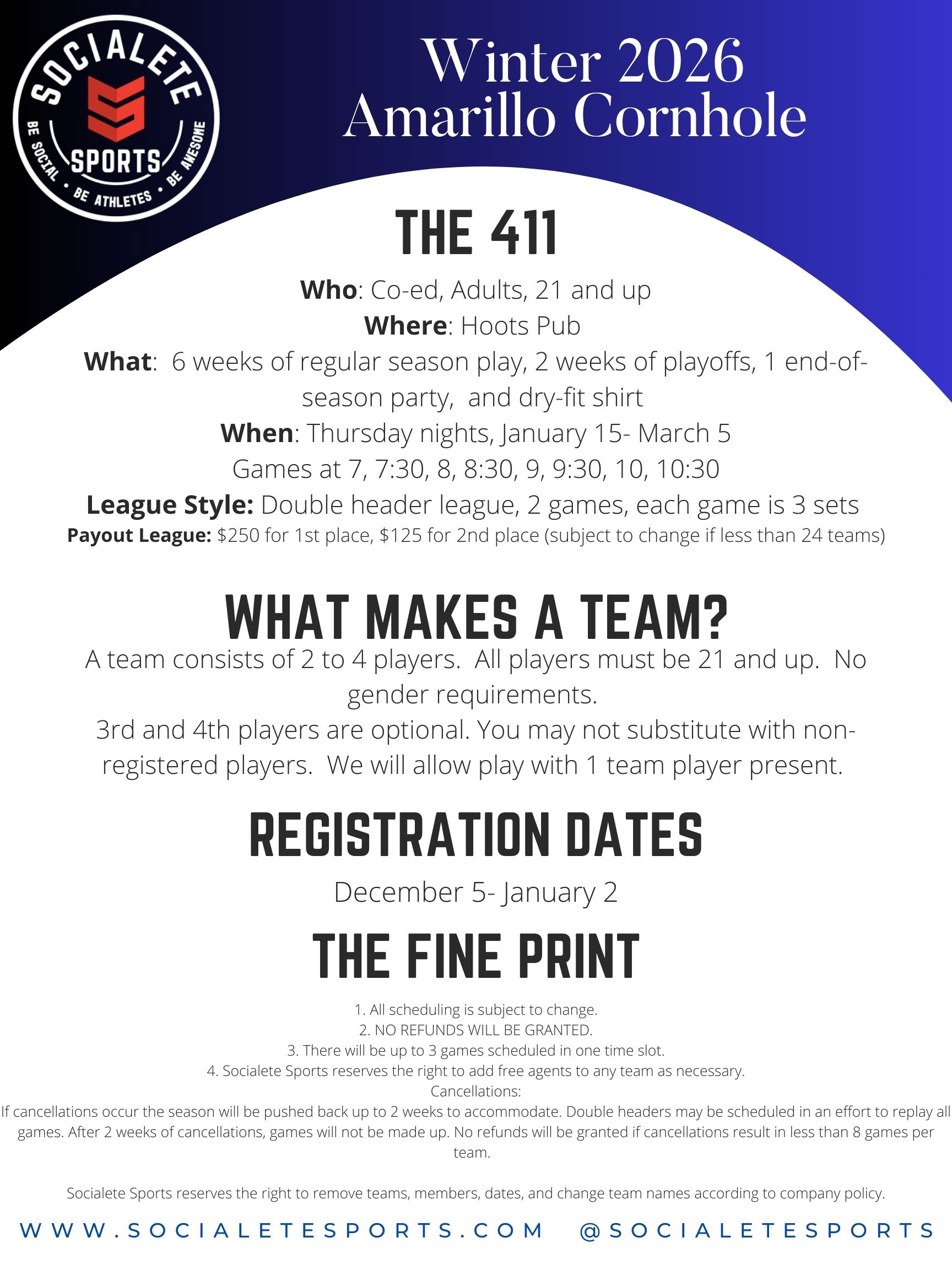 Winter 2026 Amarillo Cornhole Cornhole · Co-Ed Fun