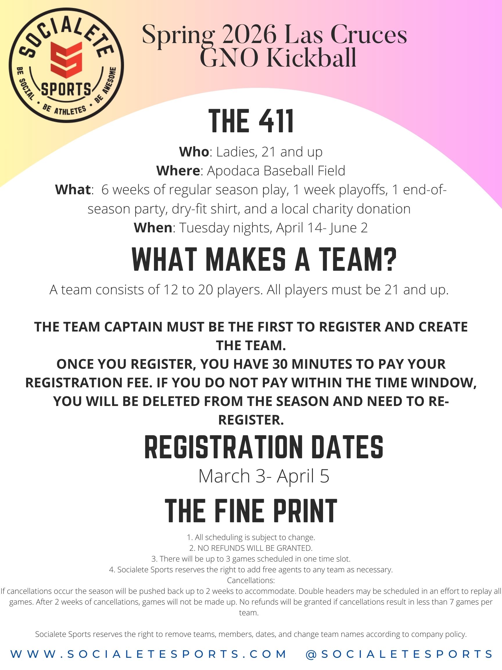 2026 Spring Las Cruces GNO Kickball Kickball (Outdoor) · Female Fun